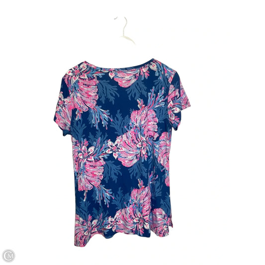 Top Short Sleeve Designer By Lilly Pulitzer In Blue & Pink, Size: L