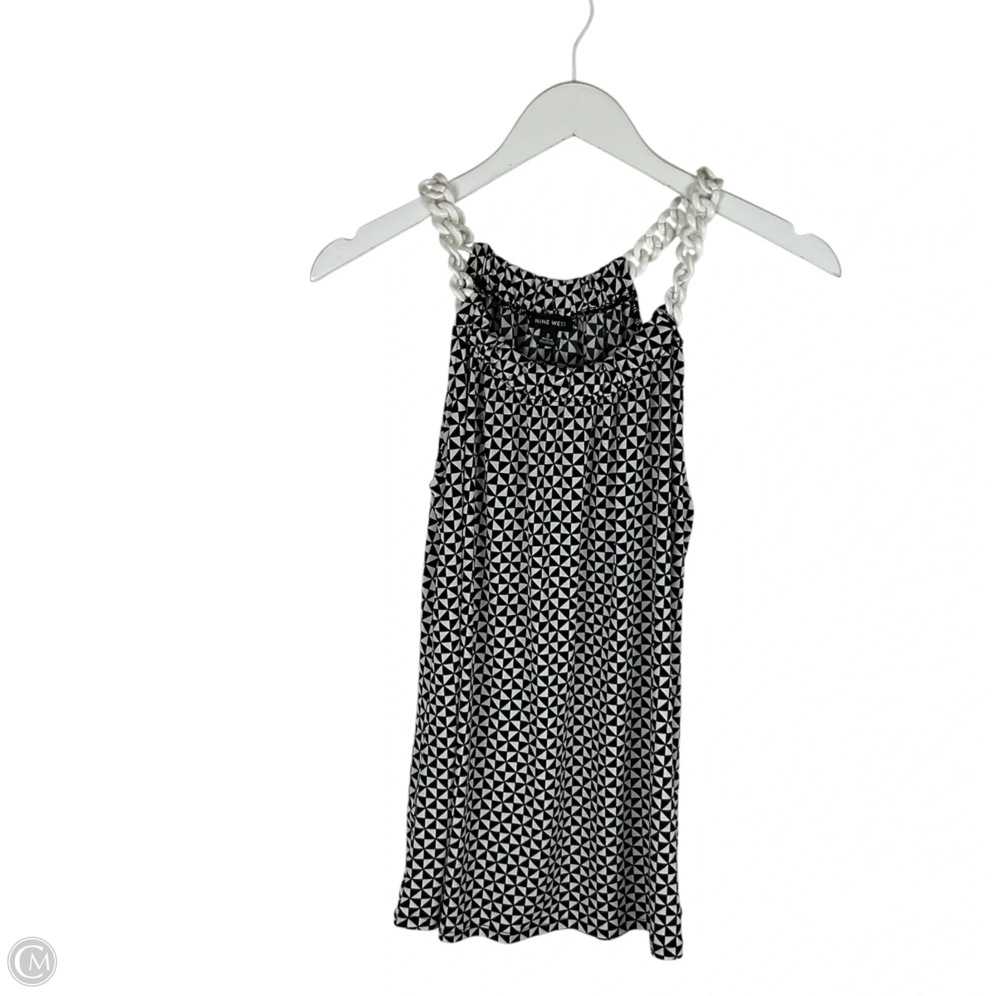 Step into chic sophistication with this Nine West sleeveless top in classic black & white. Effortlessly stylish in size S, this piece exudes timeless elegance for any occasion.